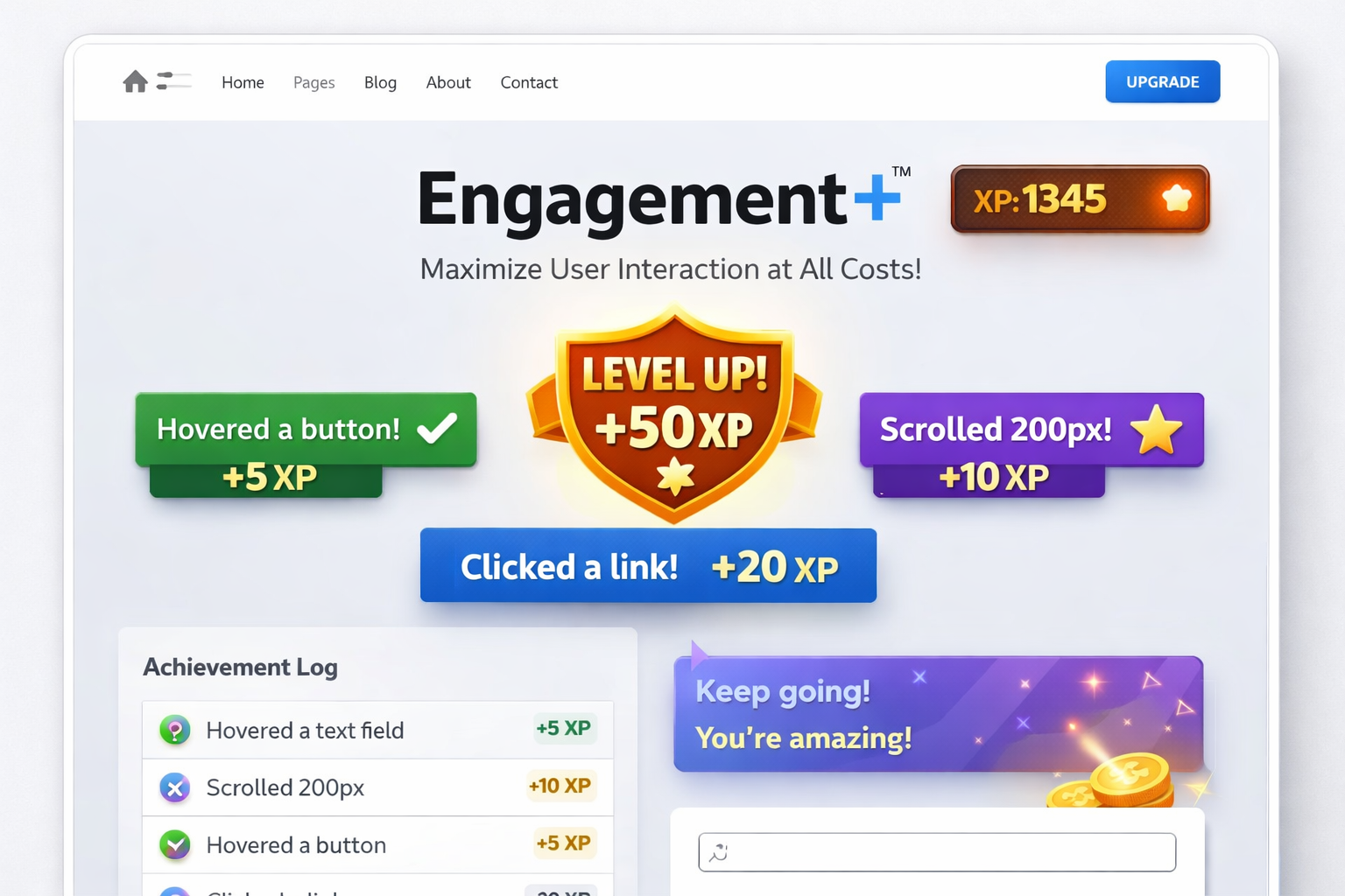 “Scrolled 200px! +10 XP”